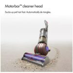 فناوری گره زدایی Dyson موهای بلند و موهای حیوانات خانگی را از اطراف خانه شما پاک می کند. سر پاککننده موتوربار به طور خودکار رشتهها را هنگام تمیز کردن از روی نوار برس بلند میکند و مستقیماً به داخل سطل میفرستد.